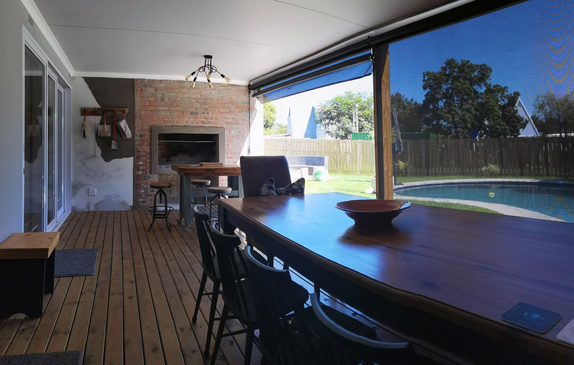The ground floor open-plan living area offers plenty of comfortable seating, as well as a large television for those family movie nights. The living area leads to the undercover braai and dining area, with a view of the sparkling swimming pool and fire pit. Trust us, you’ll be lighting a fire and enjoying dinner out here most nights! In summer, you’ll definitely want to be lounging by the pool.