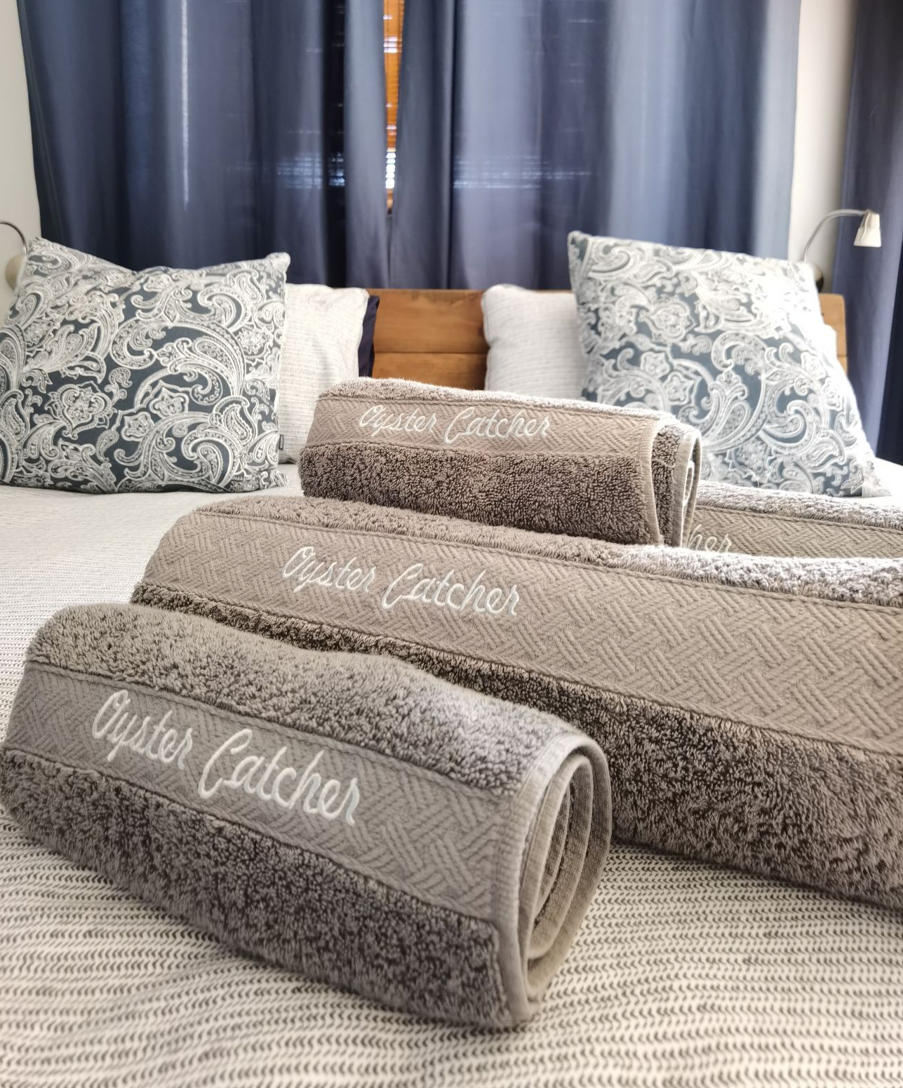 Oyster Catcher offers 4 cosy bedrooms and 3 bathrooms. The main bedroom is upstairs and has a large, private balcony. It offers a luxurious King-size bed. The second and third bedrooms each have 2 ¾ beds. The fourth bedroom offers 2 ¾ bunk beds; perfect for the little ones. Each bed has crisp, clean as well as bath a bath sheet, hand towel and swimming towel for each guest. The upstairs bathroom has bubble bath fun for the kiddies, whilst the downstairs bathrooms are fitted with showers.